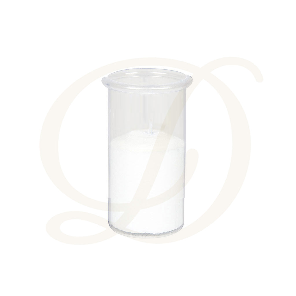 This 2 day candle insert is made with select refined waxes inside durable heat-tolerant plastic. The wick is specially treated for even burning.