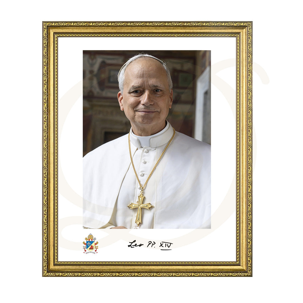 This beautiful portrait of Pope Leo XIV is the official Vatican portrait. This Beautiful print comes inside a Classic Gallery wood frame with an ornate inner bead. Framed Print available in two sizes.